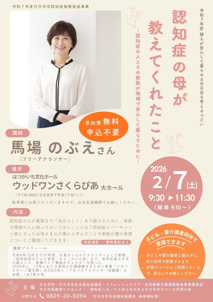 認知症の人が最期まで「自分らしく」あり続けるために、家族や周囲の人に知っておいてほしいことは?認知症とパーキンソン病になったお母さまの介護から学んだことや家族介護の実情についてご講演いただきます。(手話通訳・要約筆記あり)