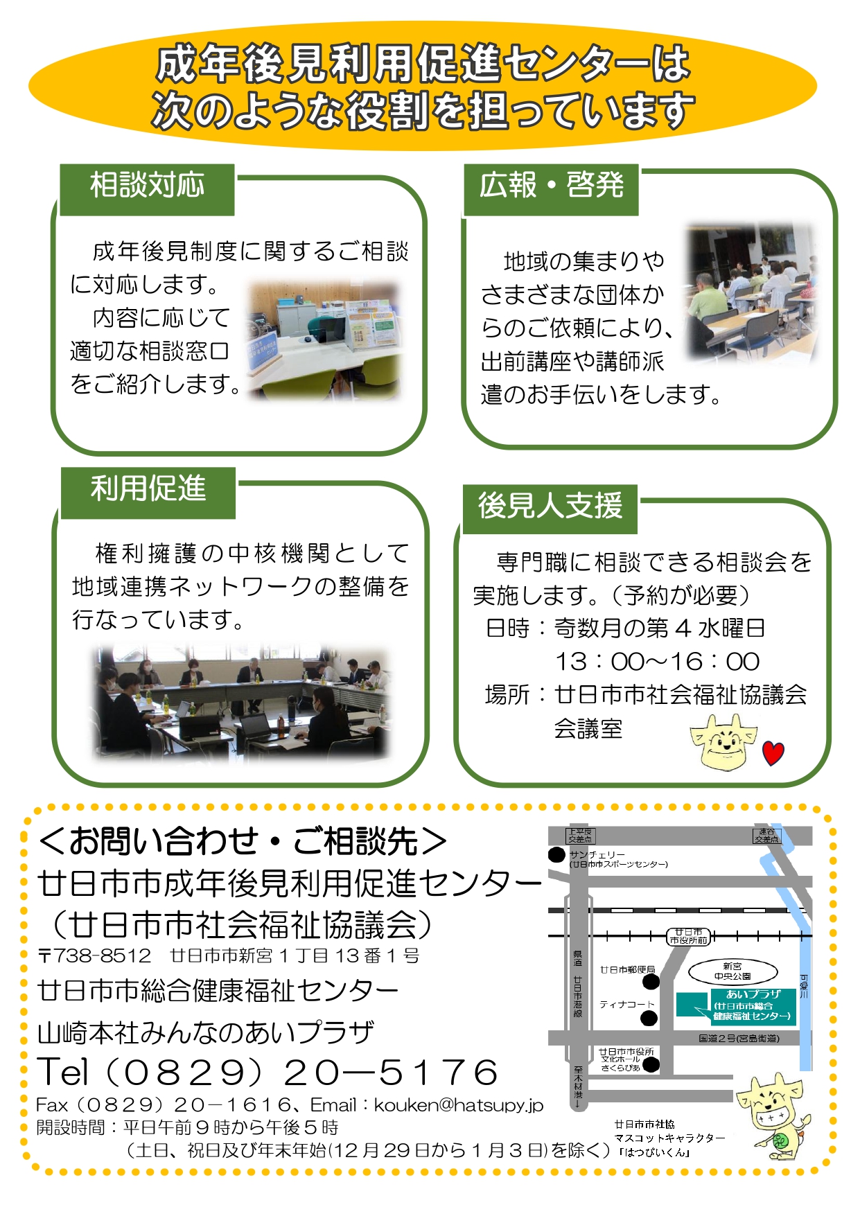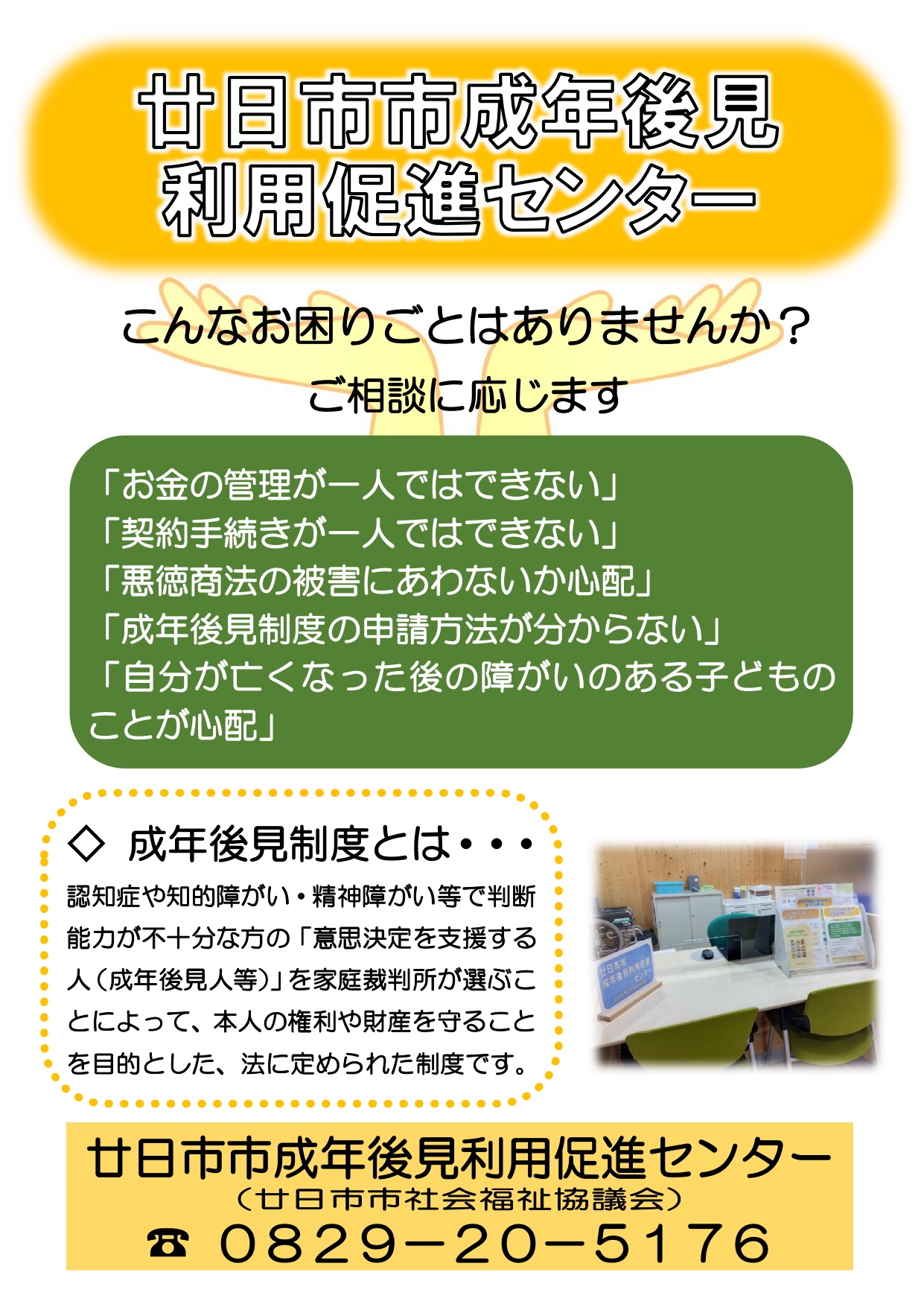 認知症や知的障がい・精神障がい等で判断能力が不十分な方の「意思決定を支援する人(成年後見人等)」を家庭裁判所が選ぶことによって、本人の権利や財産を守ることを目的とした、法に定められた制度です。